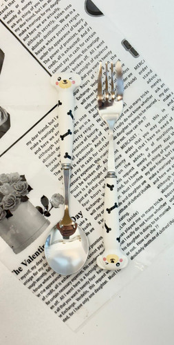 قاشق چنگال دسته سیلیکونی کودک کورومیناموجود قاشق چنگال کودک دسته سرامیکی اسمایلناموجود کارد و چنگال میوه خوری یونیکناموجود