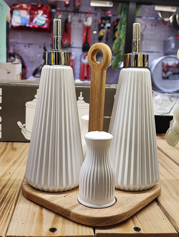 ست آبلیمو و نمک گلس کالر در ۴رنگ با طراحی منحصر بفرد و ظریف خود می تواند زیبایی آشپزخانه شما را دو چندان کند. یکی از ظروفی که باید همیشه روی میز غذاخوری باشد، ظروف سرو چاشنی است. برای سرو سالاد باید آبلمیو، روغن و سرکه مهیا باشد و نمک و فلفل هم یکی از اقلام جدانشدنی سرو غذاست. ست آبلیموخوری و نمکپاش ریور مدل با کد ۳۹۲۰ شامل دو عدد ظرف آبلیمو و روغن و دو عدد نمک پاش و فلفل است که روی یک استند چوبی قرار دارد. به دلیل وجود حفره روی سطح استند.